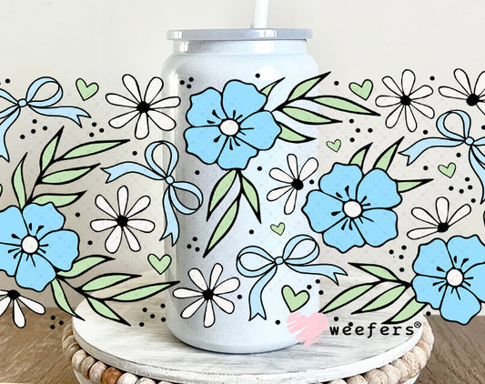 UV DTF Cup Wrap – Blue Flowers Coquette Bows