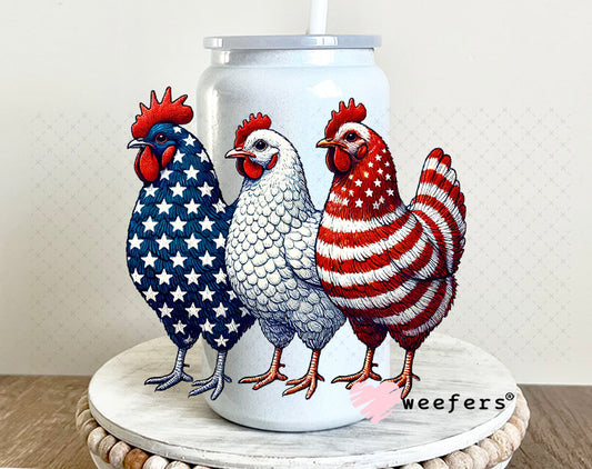 UV DTF Decal - Patriotic Chickens 4th of July