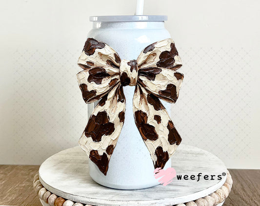 UV DTF Decal - Bow Brown Cow Print