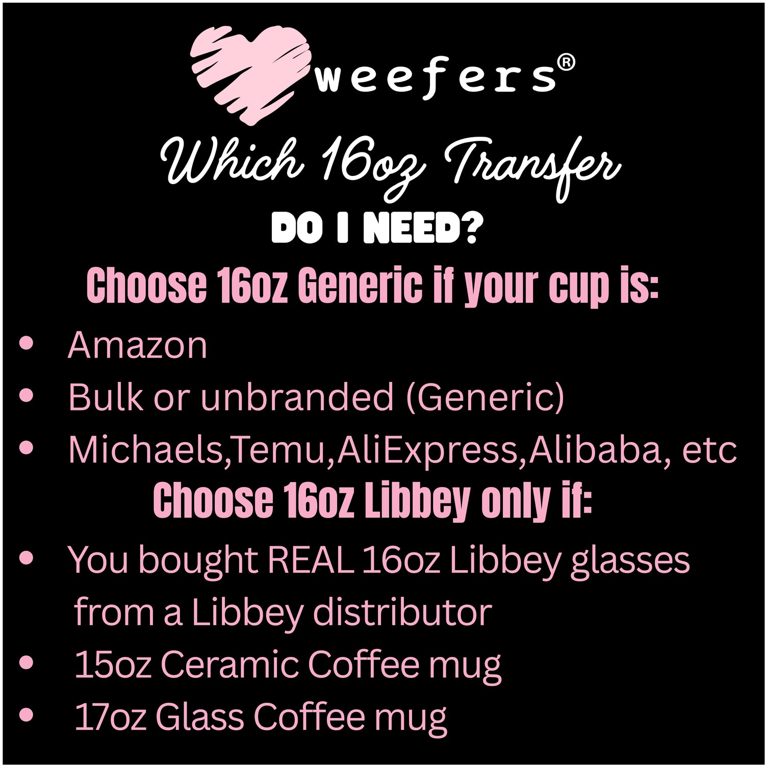 Let's see your cup wraps!Weefers offers a convenient and flexible solution for small businesses looking to sell cups with designs on them. We use only high-quality permanent UV DTF film to print our transfers. Ready to apply cup wraps allow businesses to easily restock popular designs and test out new ones without having to carry a lot of inventory. And because we print the transfers in-house, you can ensure that your business can always get your best-selling designs when you need them. Cup wraps are the perfect solution for businesses looking to keep their cup designs fresh and up-to-date. Click the chat button if you have any questions. Weefers is happy to help you get started.