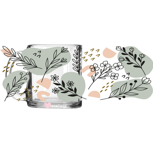 Green Abstract Floral 11oz Coffee Mug UV DTF or Sublimation Wrap - Decal