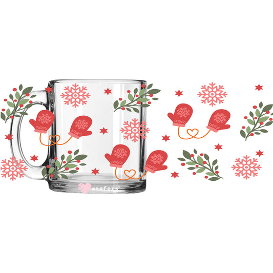 Christmas Mittens and Holly 11oz Coffee Mug UV DTF or Sublimation Wrap - Decal