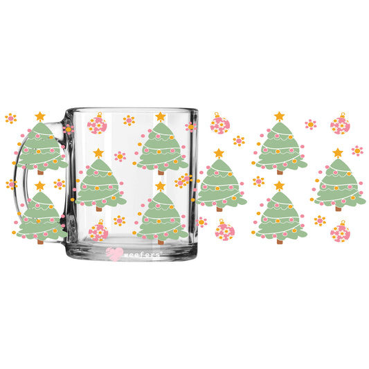 Pink Whimsical Christmas Trees 11oz Coffee Mug UV DTF or Sublimation Wrap - Decal