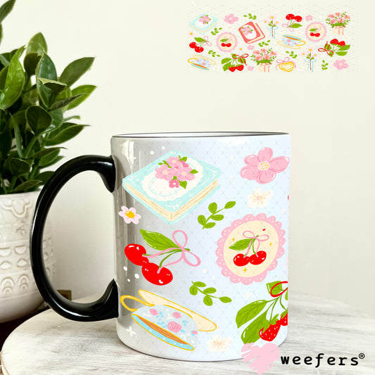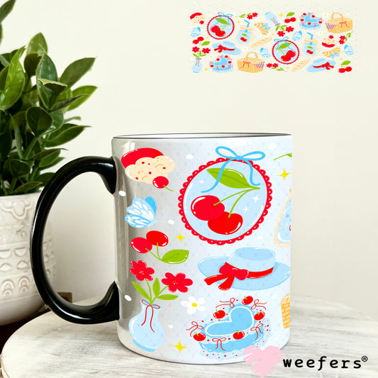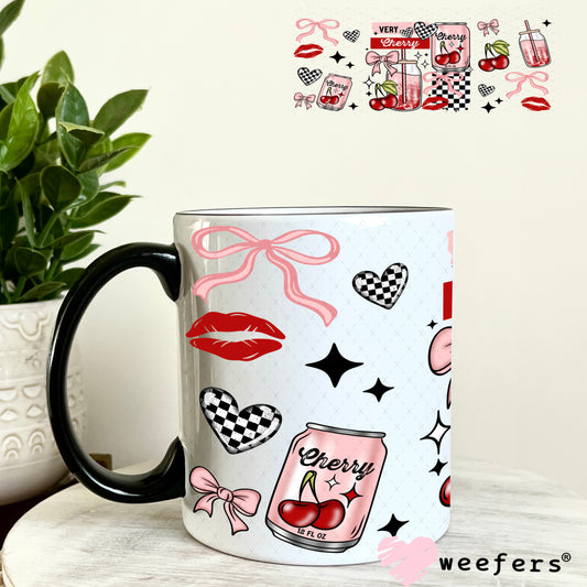 UV DTF Cup Wrap – Cherry Heart Bows- 11oz Coffee Mug