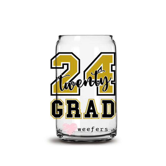 Gold Glass of 2024 Grad 16oz Libbey Glass Can UV DTF or Sublimation Wrap - Decal