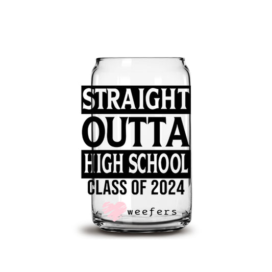 Straight Outta High School Class of 2024 16oz Libbey Glass Can UV DTF or Sublimation Wrap - Decal