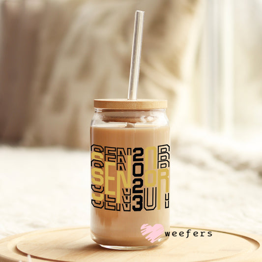 Senior 2023 Gold 16oz Libbey Glass Can UV DTF or Sublimation Wrap - Decal