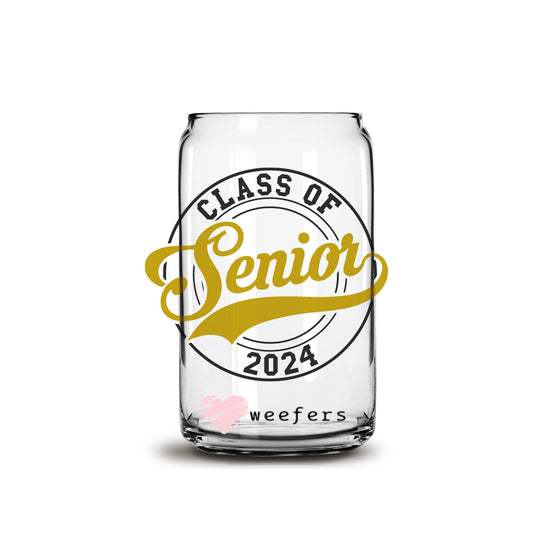 2024 Senior Gold and Black 16oz Libbey Glass Can UV DTF or Sublimation Wrap - Decal