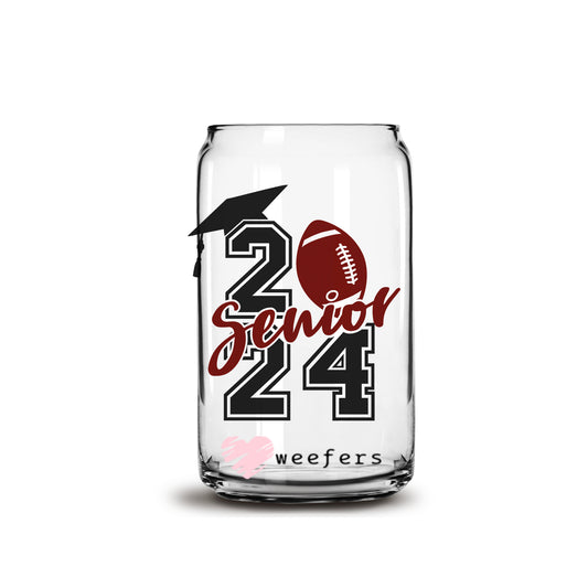 Senior 2024 Football Grad 16oz Libbey Glass Can UV DTF or Sublimation Wrap - Decal