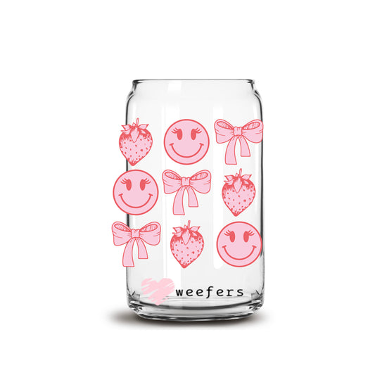 Coquette Hearts Smile Face 16oz Libbey Glass Can UV DTF or Sublimation Cup Wrap - Decal