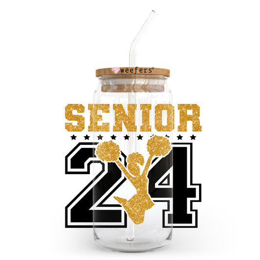 Senior 24 Cheer Gold and Black 20oz Libbey Glass Can UV DTF or Sublimation Wrap - Decal Transfer