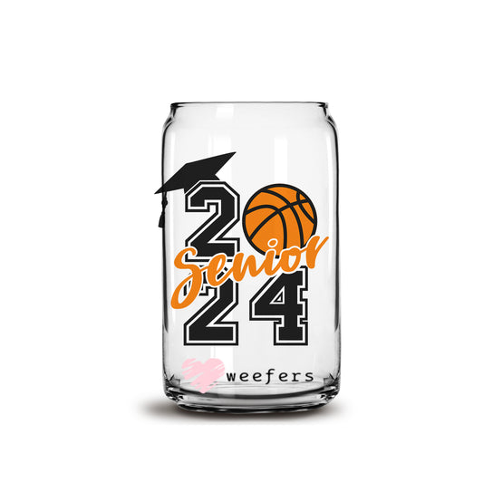 Senior 2024 Basketball Grad 16oz Libbey Glass Can UV DTF or Sublimation Wrap - Decal