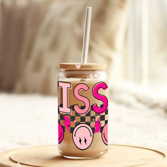 Sissy Checkered Pink 16oz Libbey Glass Can UV DTF or Sublimation Wrap Decal Transfer