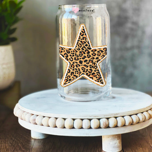 Mom Cheetah Star 16oz Libbey Glass Can UV DTF or Sublimation Wrap Decal Transfer