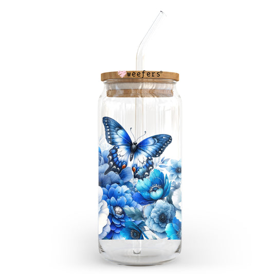 Blue Butterfly Floral 20oz Libbey Glass Can, 34oz Hip Sip, 40oz Tumbler, 24oz Cold Cup UV DTF or Sublimation Decal Transfer