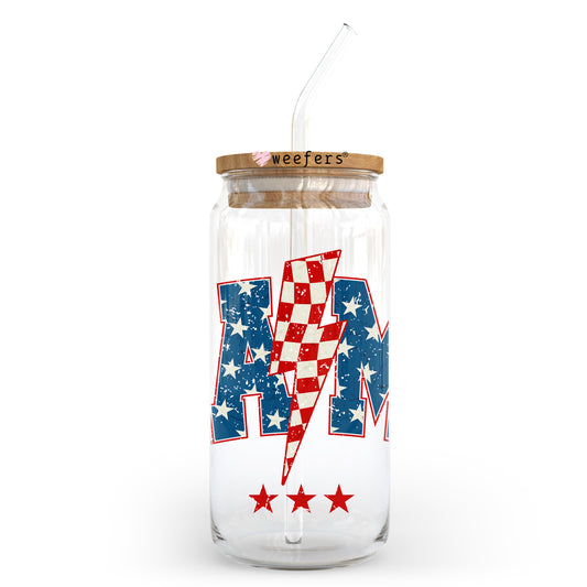 Mama Lightening bolt 4th of July 20oz Libbey Glass Can, 34oz Hip Sip, 40oz Tumbler, 24oz Cold Cup UV DTF or Sublimation Decal Transfer