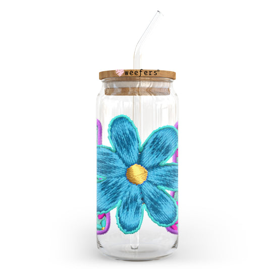 Mom Floral Faux Embroidery 20oz Libbey Glass Can UV DTF or Sublimation Decal Transfer