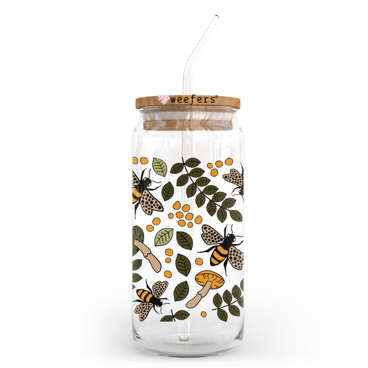 Bees And Mushrooms 20oz Libbey Glass Can UV DTF or Sublimation Wrap - Decal