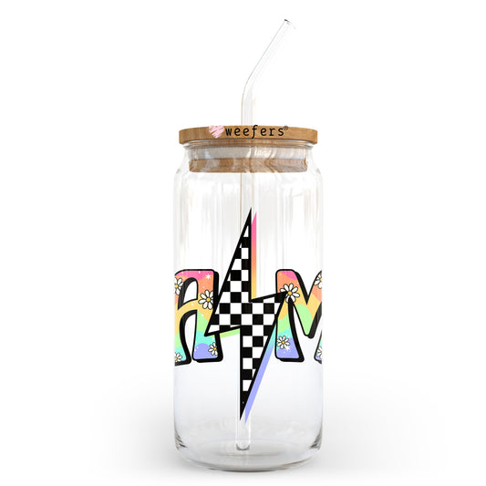 Mama Checkered Lightening Bolt 20oz Libbey Glass Can UV DTF or Sublimation Decal