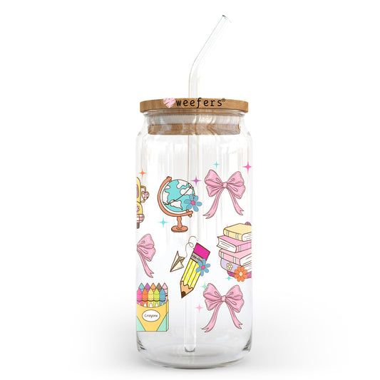 Pink Bows and School 20oz Libbey Glass Can, 34oz Hip Sip, 40oz Tumbler, 24oz Cold Cup UV DTF or Sublimation Decal Transfer