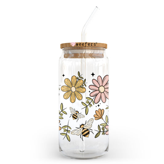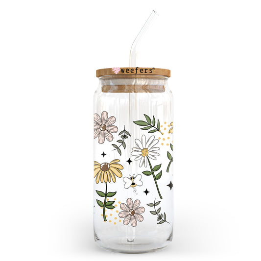 Bees And Daisies 20oz Libbey Glass Can, 34oz Hip Sip, 40oz Tumbler, 24oz Cold Cup UV DTF or Sublimation Decal Transfer
