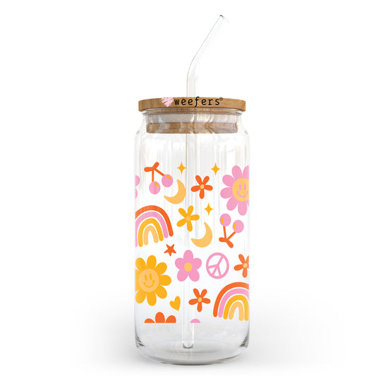 Happy Flowers And Rainbows 20oz Libbey Glass Can, 34oz Hip Sip, 40oz Tumbler, 24oz Cold Cup UV DTF or Sublimation Decal Transfer