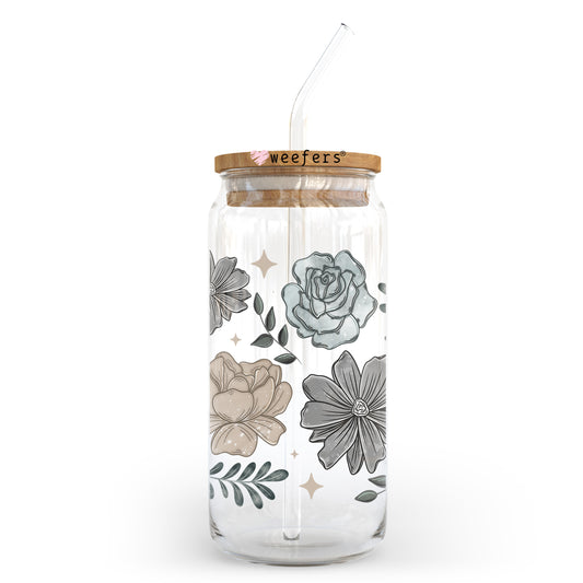 Blue And Gray Florals 20oz Libbey UV DTF Cup Wrap