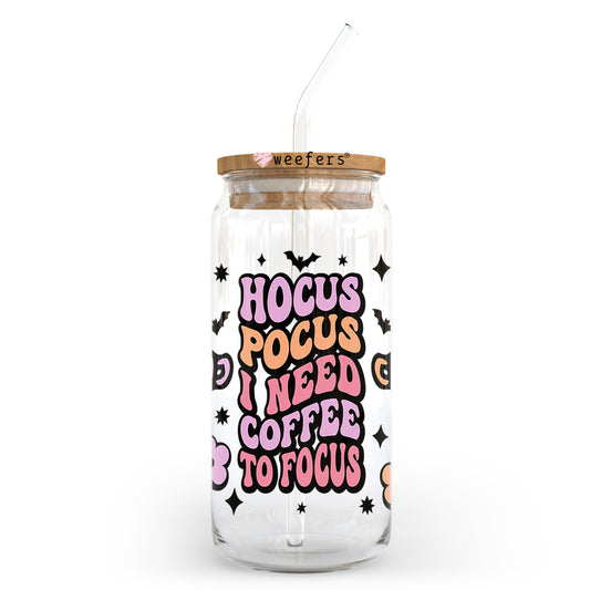 Hocus Pocus I Need Coffee To Focus 20oz Libbey Glass Can, 34oz Hip Sip, 40oz Tumbler, 24oz Cold Cup UV DTF or Sublimation Decal Transfer
