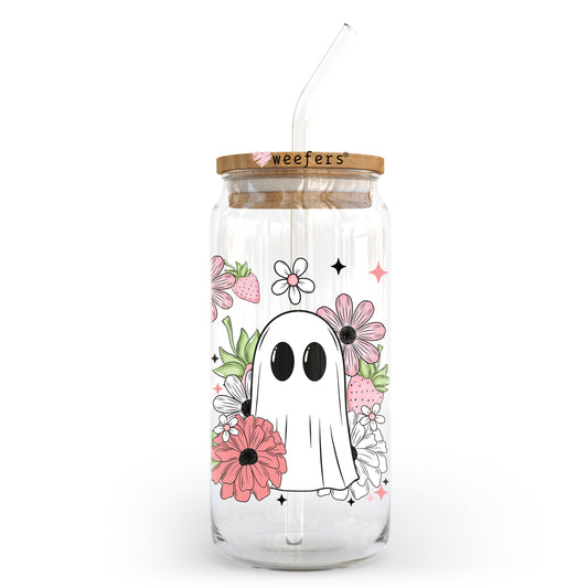Ghost And Flowers 20oz Libbey Glass Can, 34oz Hip Sip, 40oz Tumbler, 24oz Cold Cup UV DTF or Sublimation Decal Transfer