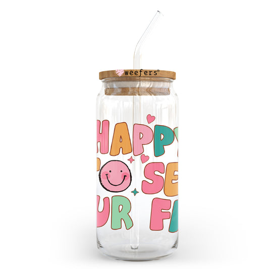 Happy To See Your Face Happy Face 20oz Libbey Glass Can, 34oz Hip Sip, 40oz Tumbler, 24oz Cold Cup UV DTF or Sublimation Decal Transfer