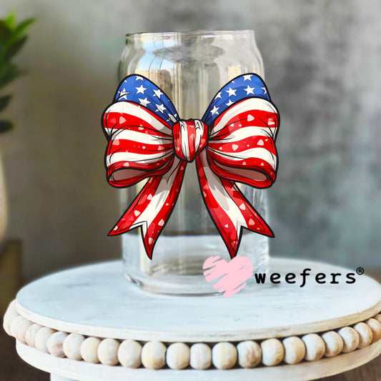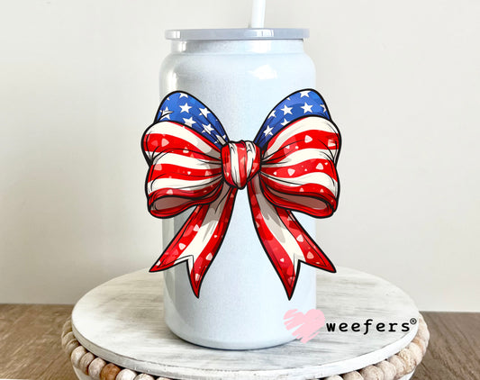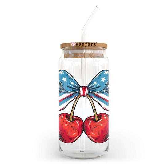 4th of July Coquette Cherry Bow 20oz Libbey Glass Can, 34oz Hip Sip, 40oz Tumbler, 24oz Cold Cup UV DTF or Sublimation Decal Transfer