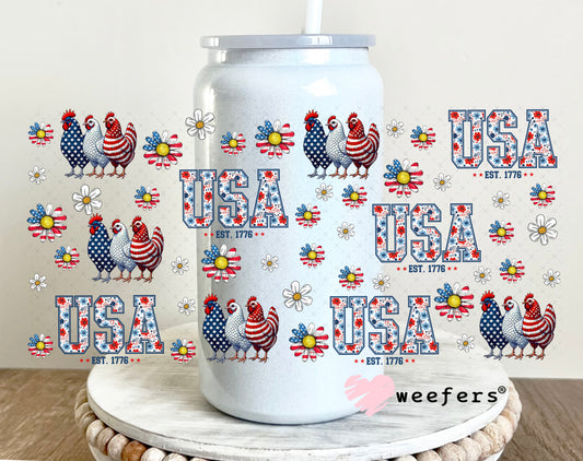 USA Patriotic Chickens UV DTF Cup Wrap - Weefers Exclusive Wrap