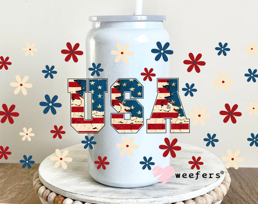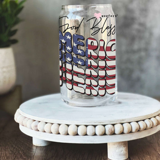 4th of July God Bless America 16oz Libbey Glass Can UV DTF or Sublimation Wrap - Decal