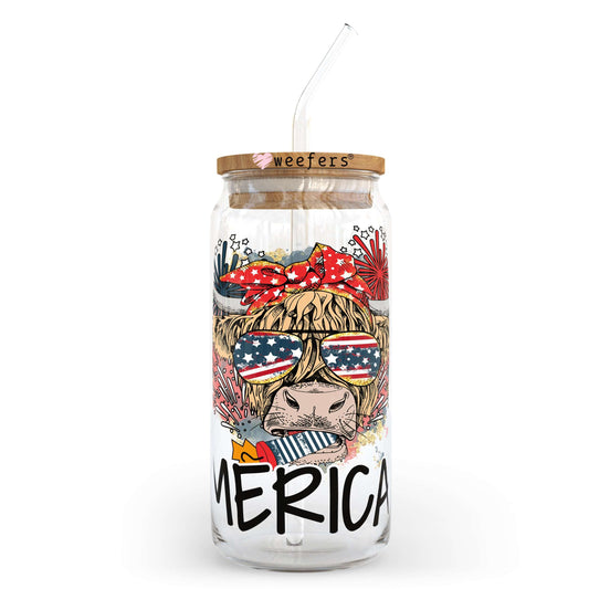 4th of July Highlander Cow America 20oz Libbey Glass Can, 34oz Hip Sip, 40oz Tumbler UV DTF or Sublimation Decal Transfer