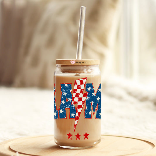 Mama Lightening Bolt 4th of July 16oz Libbey Glass Can UV DTF or Sublimation Wrap Decal Transfer