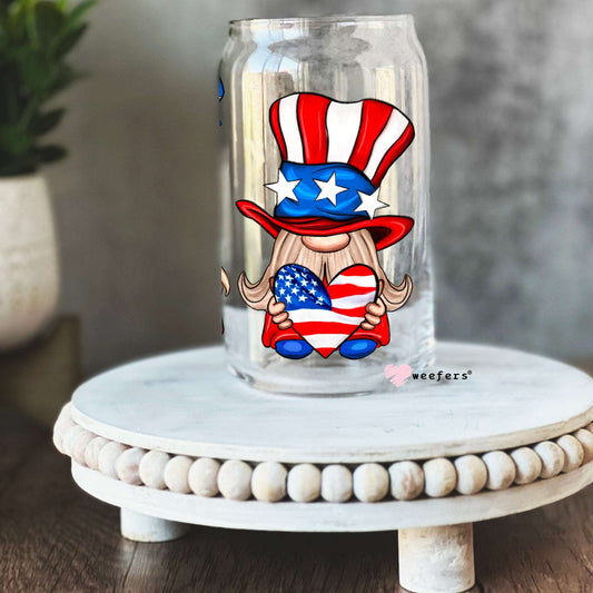 4th of July Gnomes 16oz Libbey Glass Can UV DTF or Sublimation Wrap - Decal