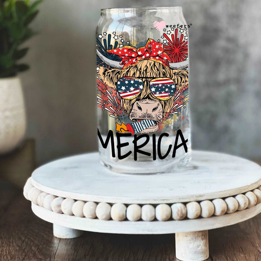 4th of July America Highlander 16oz Libbey Glass Can UV DTF or Sublimation Wrap - Decal