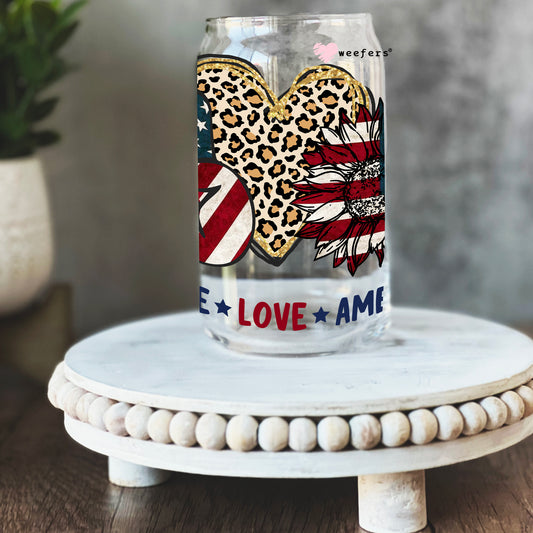 Peace Love America 16oz Libbey Glass Can UV DTF or Sublimation Wrap - Decal