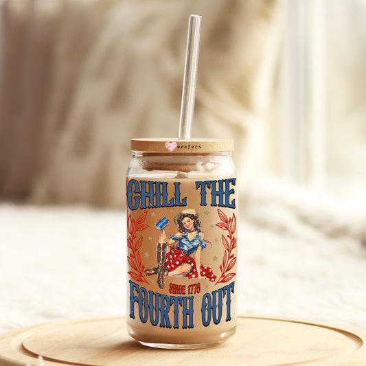 Chill the Fourth Out 4th of July 16oz Libbey Glass Can UV DTF or Sublimation Wrap Decal Transfer