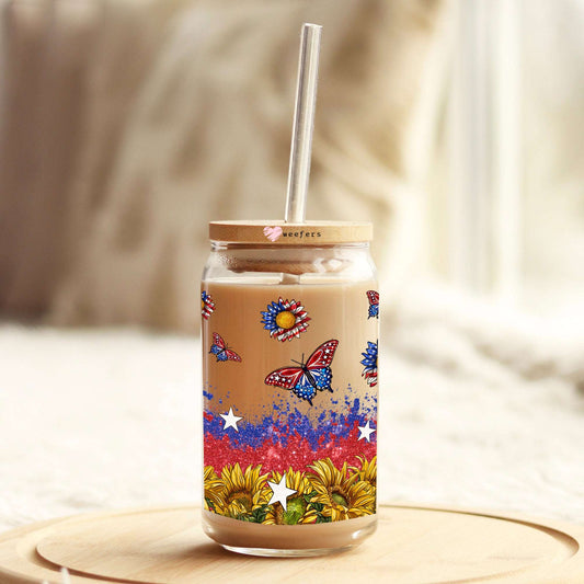 4th of July Sunglasses America 16oz Libbey Glass Can UV DTF or Sublimation Wrap - Decal