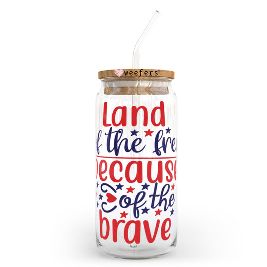 4th of July Land of the Free because of the Brave 20oz Libbey Glass Can, 34oz Hip Sip, 40oz Tumbler UV DTF or Sublimation Decal Transfer