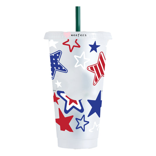 4th of July Stars 24oz UV DTF Cold Cup Wrap - Ready to apply Wrap - HOLE