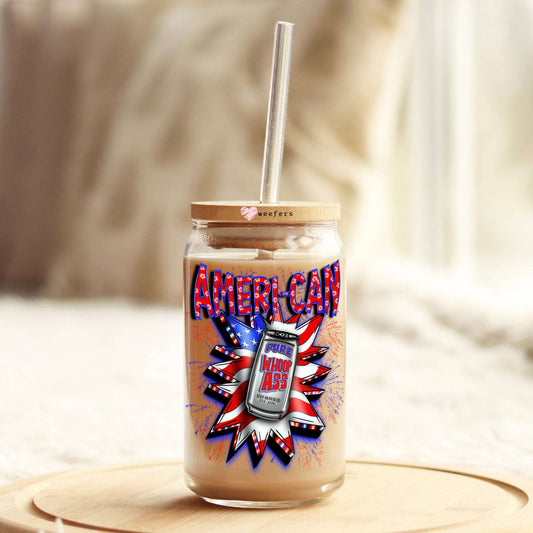 Ameri-Can Pure Whoop Ass 4th of July 16oz Libbey Glass Can UV DTF or Sublimation Wrap Decal Transfer