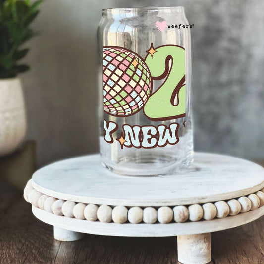 2024 New Year Disco Ball Pink and Green 16oz Libbey Glass Can UV DTF or Sublimation Cup Wrap - Decal Transfer