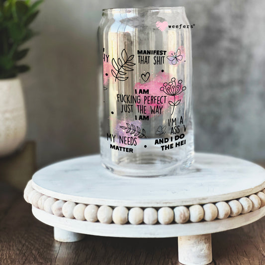 Funny Manifest that Sh$t Affirmations 16oz Libbey Glass Can UV DTF or Sublimation Cup Wrap - Decal Transfer