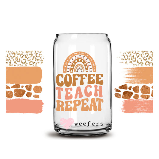 Coffee Teach Repeat Orange 16oz Libbey Glass Can UV DTF or Sublimation Cup Wrap - Decal Transfer