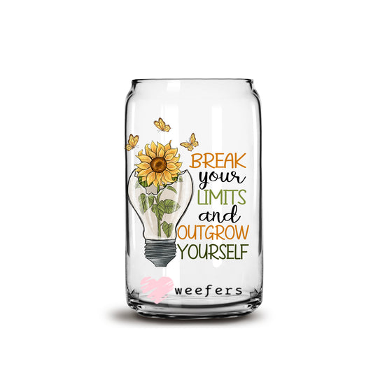 Break Your Limits and Outgrow Yourself 16oz Libbey Glass Can UV DTF or Sublimation Cup Wrap - Decal Transfer
