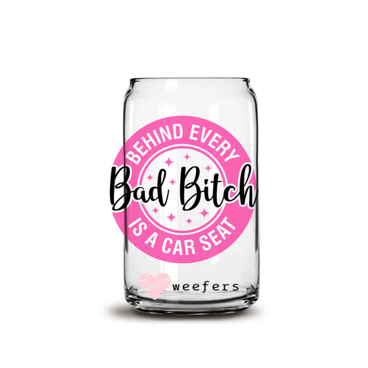 Behind Every Bad B$tch is a Car Seat 16oz Libbey Glass Can UV DTF or Sublimation Cup Wrap - Decal Transfer