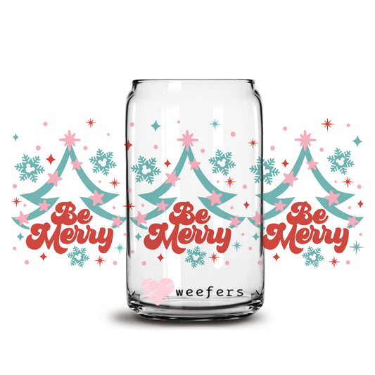 Be Merry Christmas 16oz Libbey Glass Can UV DTF or Sublimation Cup Wrap - Decal Transfer