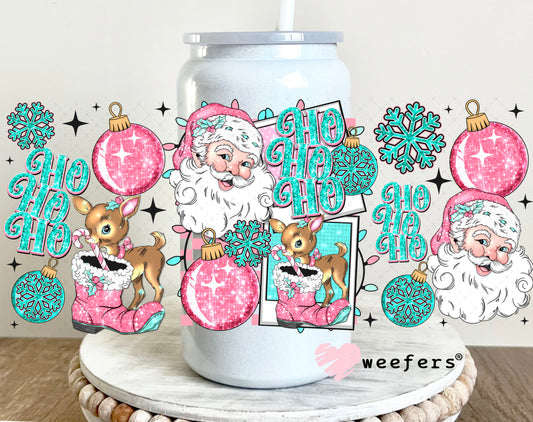 Ho Ho Ho Vintage Pink and Teal Santa UV DTF Cup Wrap